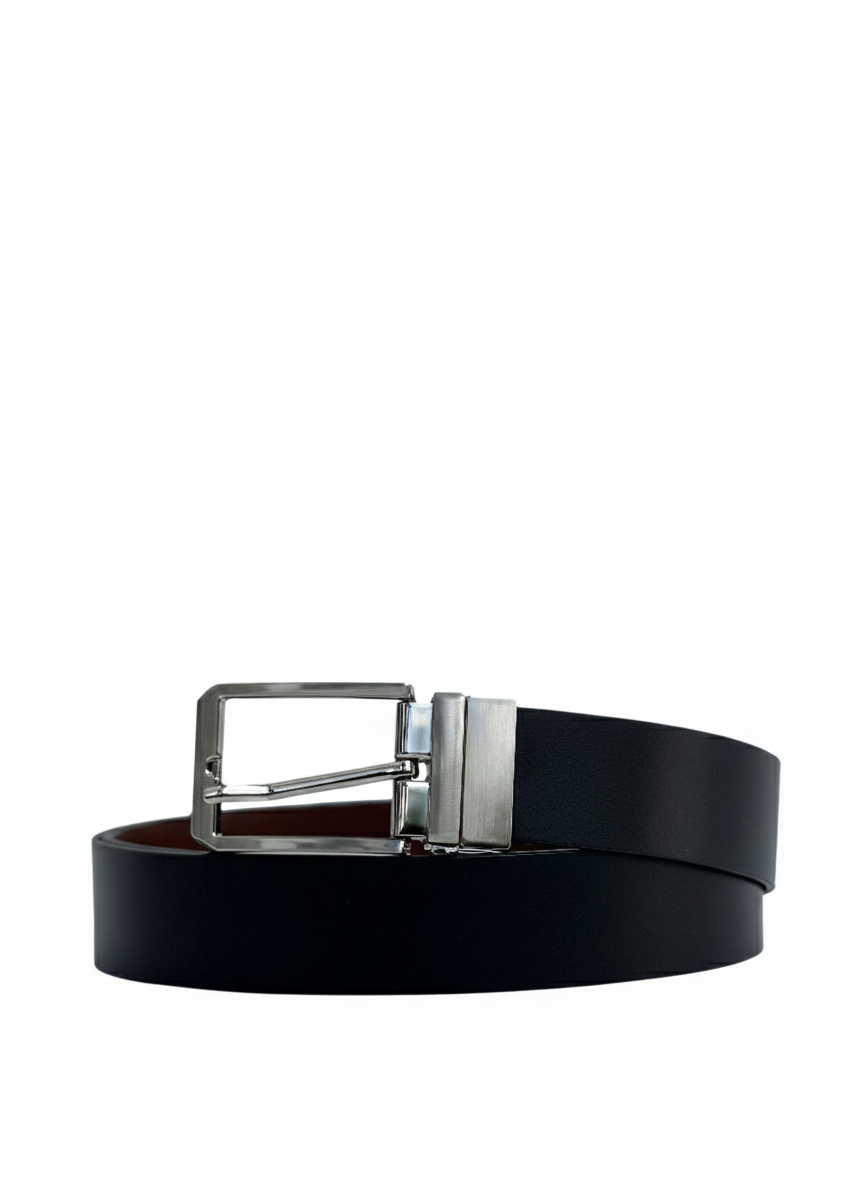 CINTURON DOBLE FAZ EN CUERO - CANTOS TINTEADOS - HEBILLA EN ZAMAC NIQUEL DE 4cm.